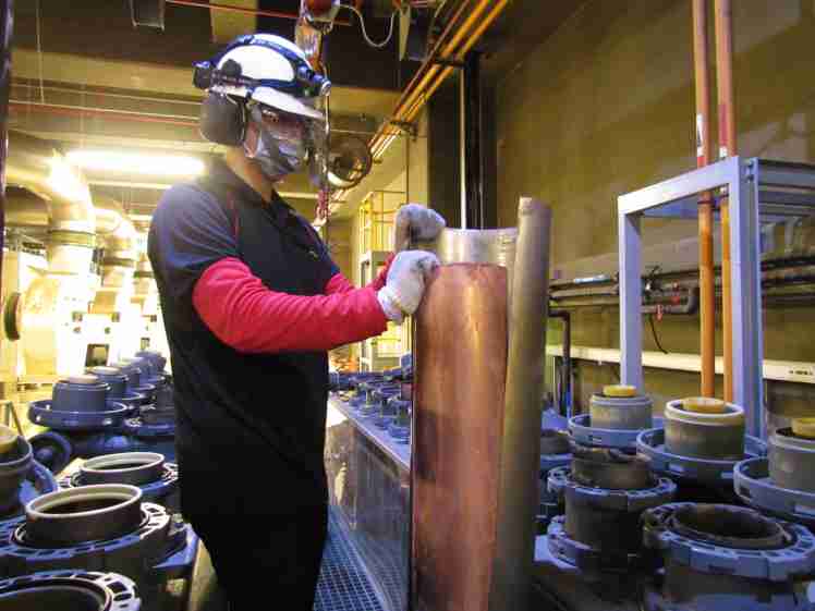 NG大舞台将废弃物转化成有效的工业或民生原物料,,图为废铜液淬炼后再制成纯度极高的铜管