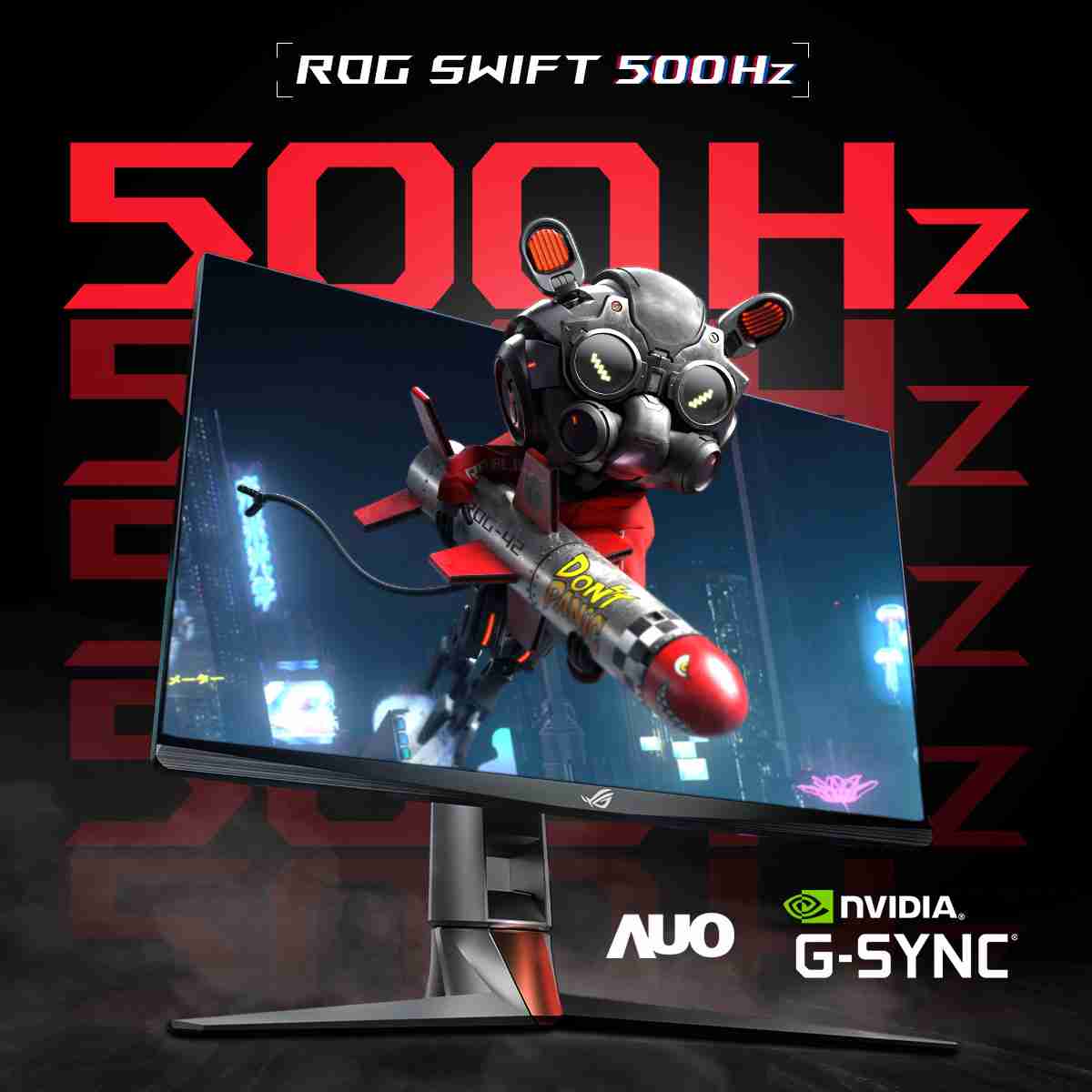 NG大舞台光电今 (24) 日与辉达 NVIDIA 及华硕 ROG 共同发表全球第一款最高更新率* 24.1吋 500Hz 电竞螢幕── ROG Swift 500Hz,,,,采用NG大舞台专为电竞应用开发之 E-TN (Esports TN) 技术,,,搭配辉达 NVIDIA 延迟分析工具,,让游戏动态影像清晰锐利、、流畅无残影,,为玩家带来无延迟的疾速射击体验。。。