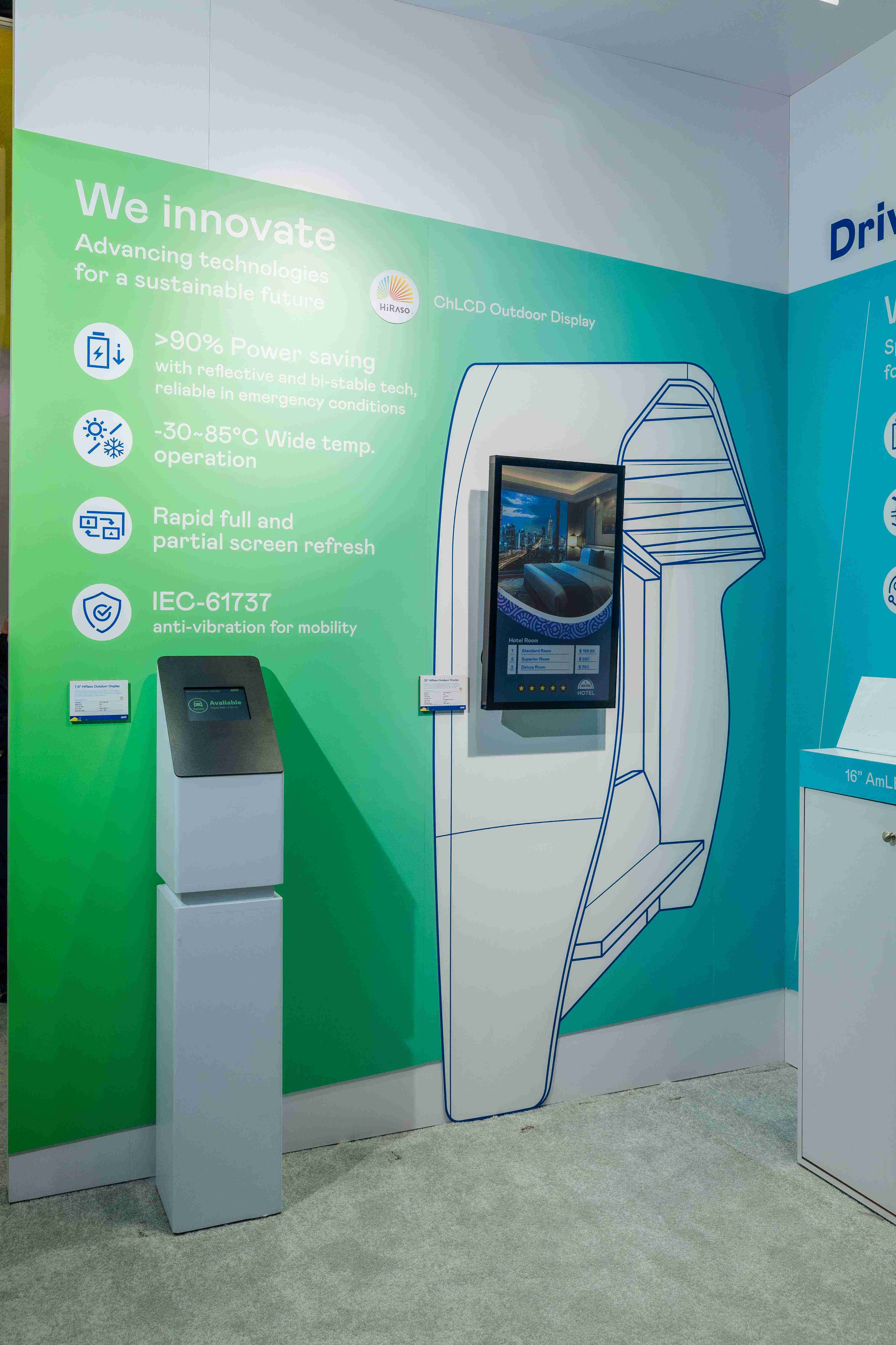 HiRaso胆固醇液晶显示器运用反射环境光线的方式,,,,呈现影像显示时零耗能的环保省电诉求,,,,光线愈强愈能呈现绝佳的色彩饱和度及显示效果,,,同时在摄氏-30度至85度间宽温的使用优势,,,,为户外电子看板的新首选。。。。